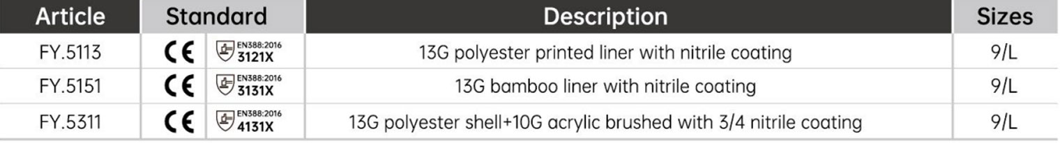 업계 선두주자인 Jiangsu Fanya Labor Protection Products Co., Ltd.는 노동 보호 제품의 연구 개발 및 생산을 전문으로 합니다. 광범위한 경험을 통해 원자재부터 완제품까지 장갑의 포괄적인 품질 관리를 보장합니다.